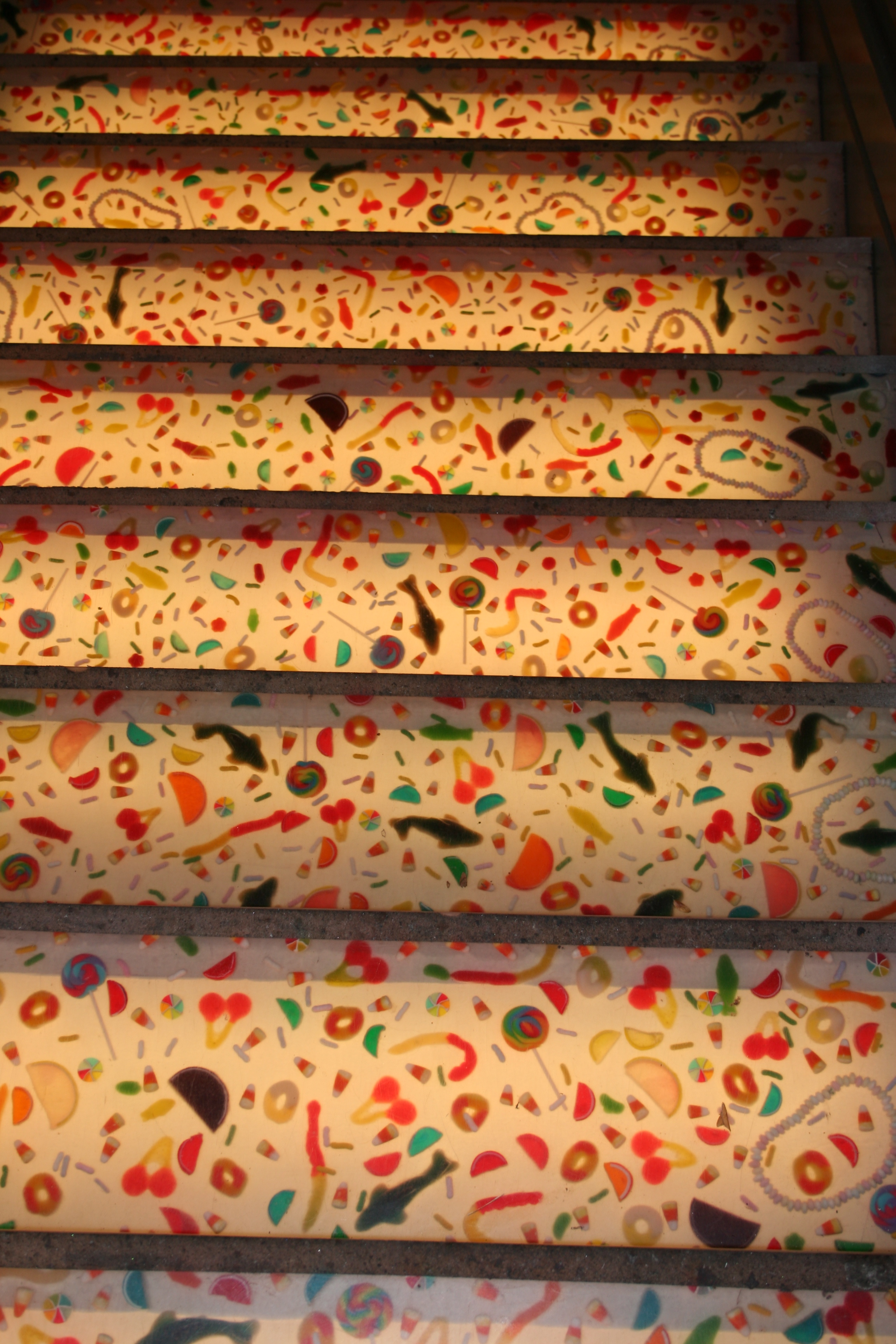 But I did love the Dylan’s stairways:  translucent backlit material littered with embedded real candy: