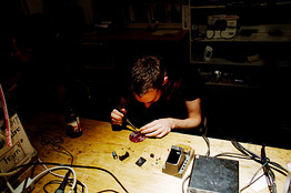 Photo by Alex Welsh for The Wall Street Journal ---Jason Euren, an anthropology student at the New School University in Manhattan, worked with a soldering kit at the Brooklyn hackerspace Resistor recently.