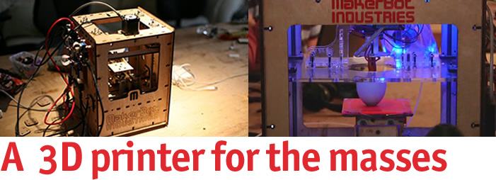 Until fairly recently, you had to be a “me” to develop a manufactured product. I mean a professionally trained designer or engineer with access to big company development and prototyping tools. Not so today. Professional training is still extremely helpful, but access to everything else around product development is becoming rapidly democratized. Here is the latest advance, from MakerBot: a 3-D printer for $750!