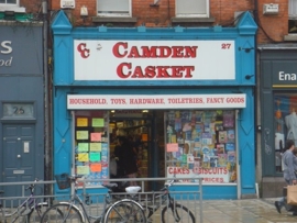 The Camden Casket is going strong and seems to have a sister shop (also the Camden Casket) just across the street. Liston’s food hall is still on one side of it. The Enable charity shop has just moved across the road – you can see it in the other Camden Street picture (with the PAN TV sign).