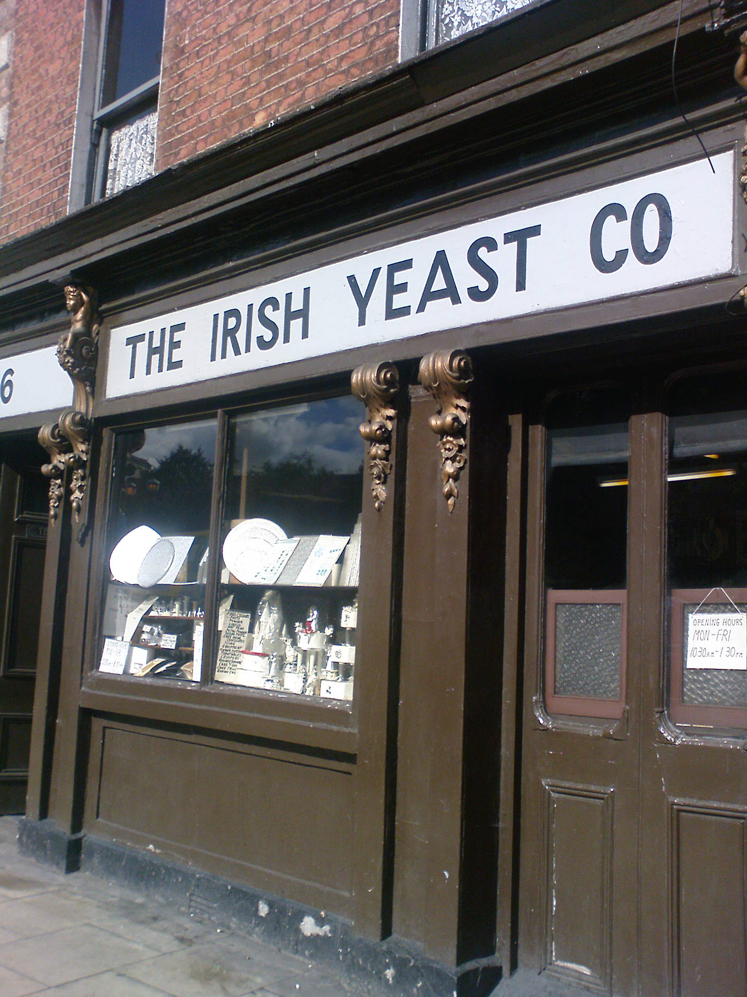 I’m watching “The Irish Yeast Company.”  Its white wooden panel sign, framed in black, with quaint, black hand lettering advertises the only retail holdout in a string of gorgeous but dilapidated Georgian buildings right next to Trinity College.  The other buildings were bought by a developer years ago, but the owners of the yeast shop refuse to sell their multi-million Euro building.  You see, they are two sisters in their ‘80’s or ‘90’s who were given the shop when their former employer, The Irish Yeast Company, sold up.  The current store has dully gleaming silver cake forms stacked up behind the nearly opaque chain-link covered windows, and the Dickensian interior offers a random selection of baking needs.  All very, very old.  No yeast, though.