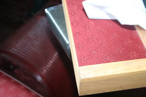 But what surprised me this weekend? Well, I have to admit that I have never looked inside the tissue box myself…but I was watching my husband fill it yesterday. And was so delighted to see that the tissues get placed inside this hand-crafted wooden box whose lining is an exact match to the seat upholstery!