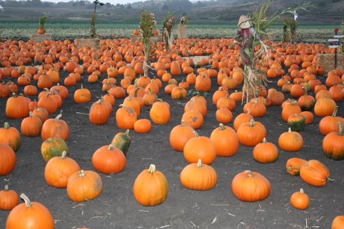 I’m in the Bay Area for the week.  After an afternoon on sterile Sand Hill I treated myself to a drive through gorgeous Half Moon Bay.  I had no idea this is Pumpkin Central.  What made me do a double take is that I kept driving by places with big signs advertising “Pumpkin Farm” and “Pumpkin Patch,” but all I saw were huge dirt fields with rows and rows of pumpkins to buy.    One such “farm” was actively being constructed by six guys with a white panel truck.  They were rapid-fire throwing pumpkins out the back and neatly lining them up, fashioning them much as they might be spaced on a native patch.
