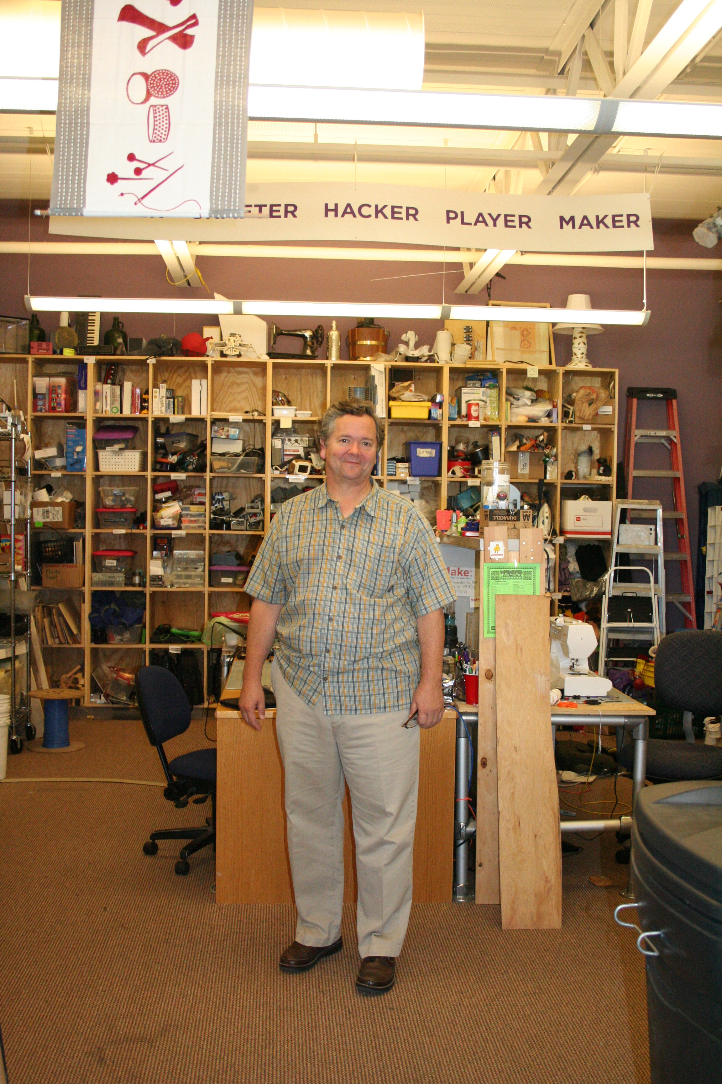 I’m always surprised at how down to earth small to medium size publisher offices tend to be. Case in point. Here’s where Make Magazine tests the projects they publish. That’s founder Dale Dougherty in the photo.