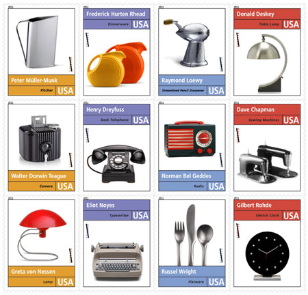 I’ve written before how surprising it is to me that people don’t know what industrial designers do, considering we affect many of the products we use (and most of the really good ones). This new release of stamps honoring Pioneers of Industrial Design will advance the cause a bit, albeit around fairly stylized products as opposed to more complex contemporary work (like mobile phone interfaces and service system design). I’ll still take it!