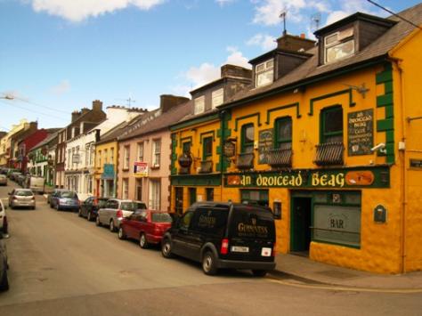 Housing secured, we did fully mine the riches of Dingle Peninsula. Here is a brief commercial for its wonders. Dingle is in the heart of the Gaeltacht–the Irish speaking parts of the island. Having nearby diners conversing in Irish was a huge redeeming feature of the expensive seafood dinner–a sheer delight after struggling with the language over Carl’s homework. They probably felt like zoo animals for the way I kept glancing over and eavesdropping. The landscape is full of history and that’s saying a lot for historically-rich Ireland. Prehistoric, Bronze Age, medieval, and Early Christian relics are there to trip over at every turn–beehive huts, Celtic crosses, sacred wells, monastic ruins, and castles. The sea, field, and mountain scenery is National Geographic spectacular–everywhere. In the US we’d go miles out of our way to drive a little stretch of specially marked “scenic route” on a map. No such need in Dingle–every road would qualify. We hiked on five different days and each jaunt was more spectacular than the last. One hike felt like being in Wyoming, with the russet and golden tones of the peat bogs at the foot of Ireland’s second highest mountain looking a lot like prairie grass. More typical were rolling green fields, mountains, stone walls, and crashing white foam on blue seas nearby. Take a look at the 1969 “Ryan’s Daughter” movie or the first 15 minutes of the more recent Tom Cruise/Nicole Kidman “Far and Away” to see some of this countryside. If you choose to watch more than the first 15 minutes, don’t blame it on me.