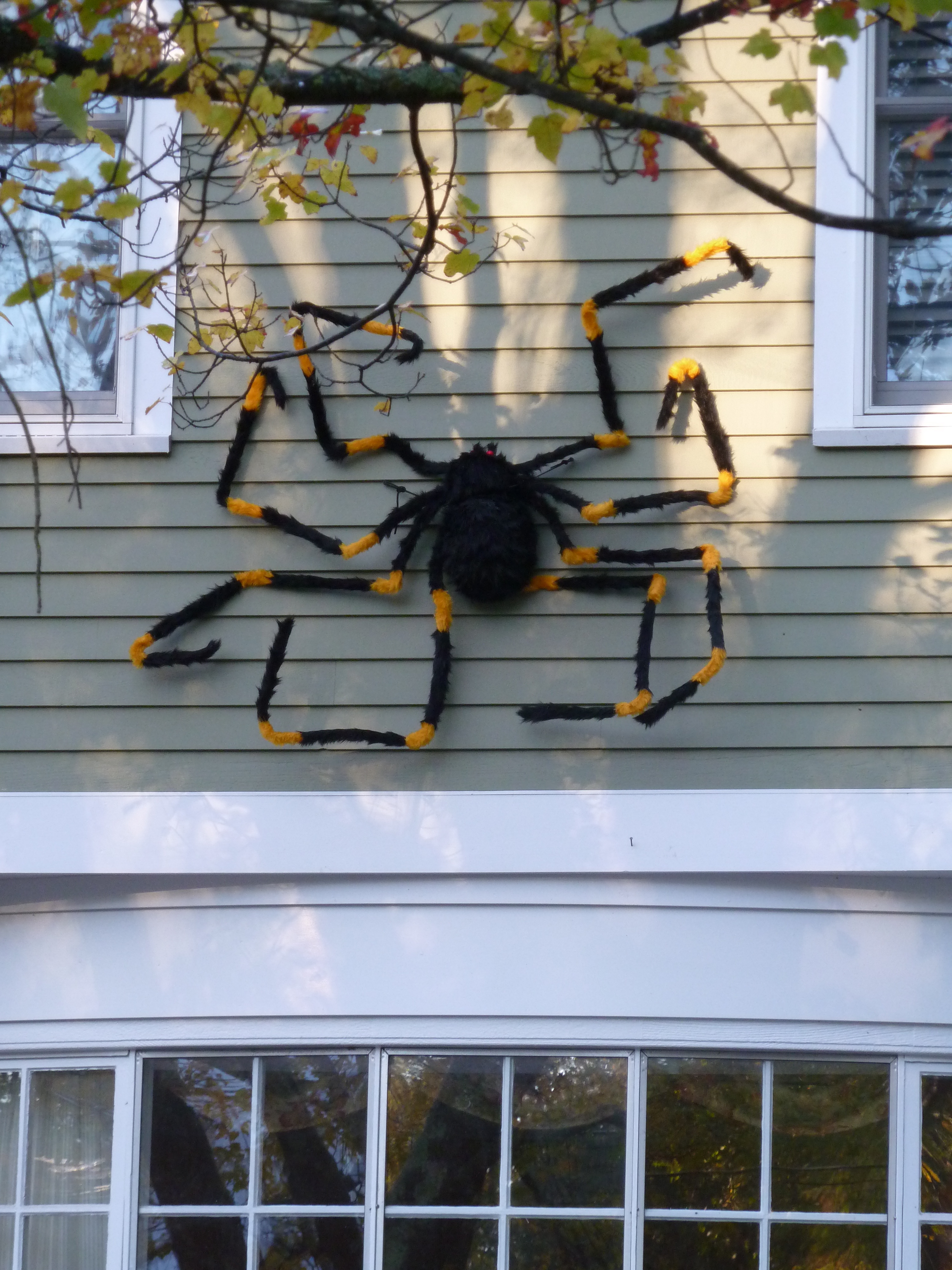 In the course of the conversation I commented on the marked increase in fantastic Halloween decorations in our town. There is a flood of cool faux granite tombstones on the lawns of many homes. Strings of twinkly orange lights abound. My neighbor has giant Savadore Dali type spiders crawling all over the front of her traditional Colonial. This Halloween celebration wave started with the giant inflatables that appeared a few years ago but the new decor that I see multiplying like rabbits has gotten pretty interesting.