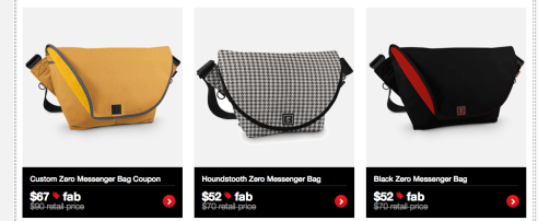 The first image you show from our Fab.com sale is a coupon for a custom Rickshaw bag. We sold this coupon for $67, it is $90 on Rickshaw’s site.
