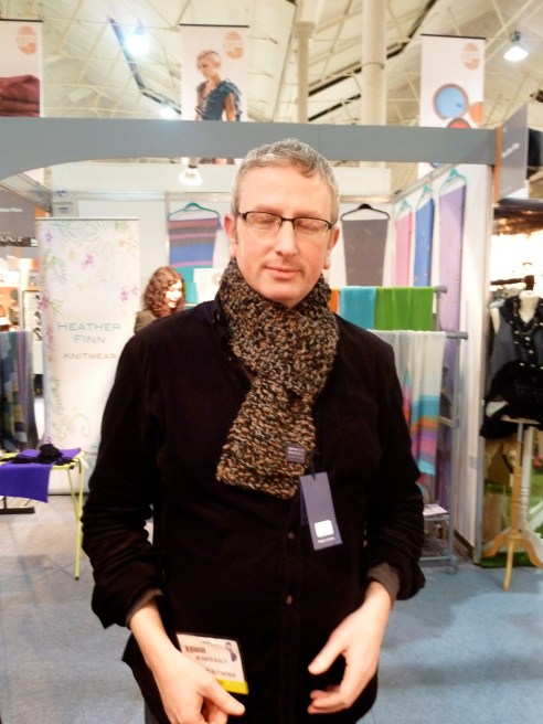 One of the things I struggled with regarding Irish craft during my residency in Dublin (2001-5) was the aesthetic.  The materials and techniques were gorgeous.  But the vibe was kind of 1970’s tourist for some of the bigger producers.  It was hard to understand, given the very contemporary sensibilities of Irish people.  Thus I was really happy to see this man applying wonderful Irish wools and knitting techniques to some great modern menswear.  (This scarf is better in person…not leopard printy!)