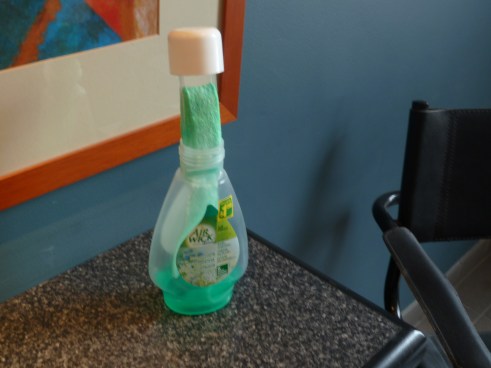 We rented a sleek and sunny apartment on Square St. Louis. (See it here: I recommend it. http://www.vrbo.com/33564) There were five of us. Every person was caught short by this horribly ugly air freshener right in the entry. We had to hold back our instincts to jettison someone's nasty old "Scope" bottle. Let's just assume the building super has no taste. The thing smelled bad to boot!