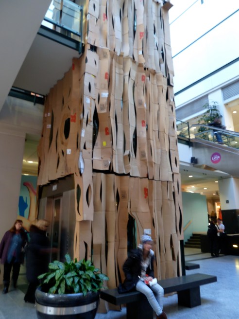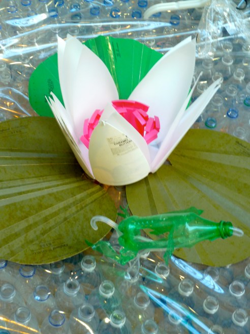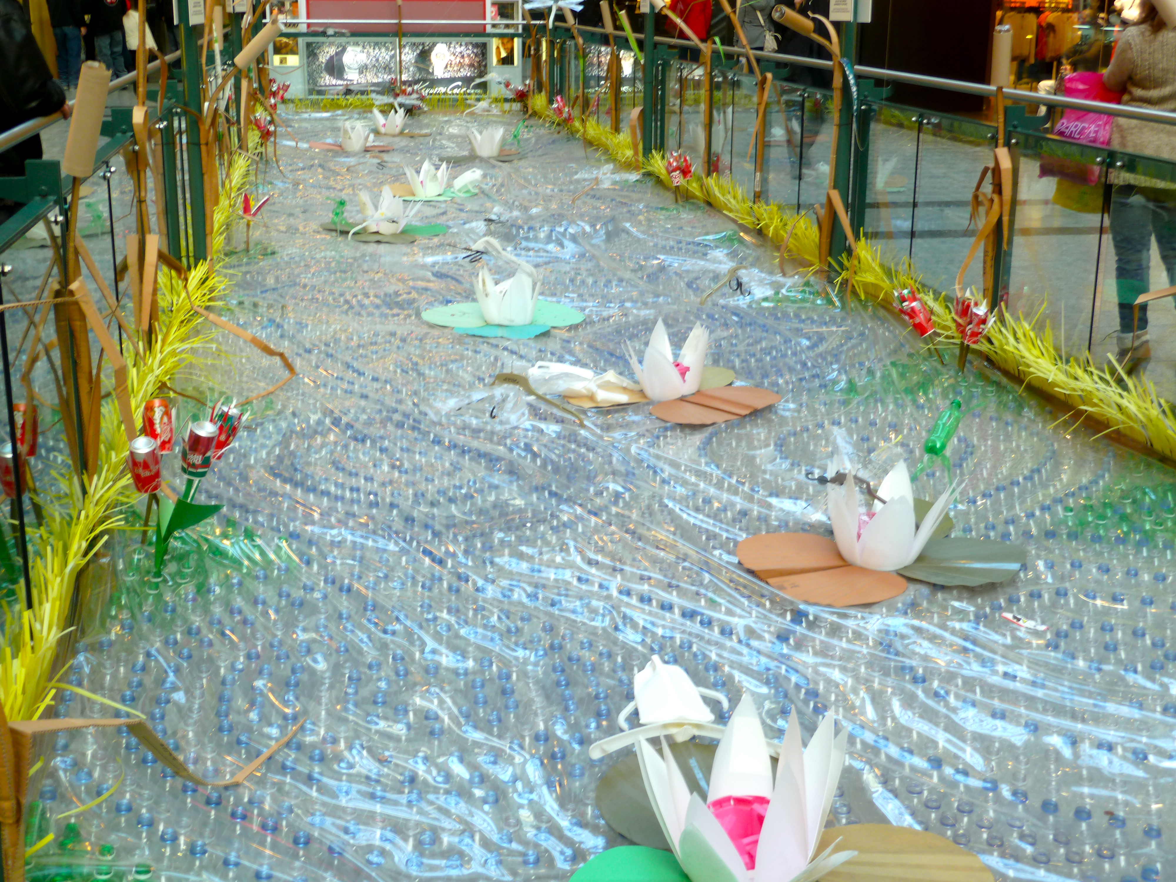 Near the elevator were other huge installations of art made from trash, like this giant rectangular "lilly pond." The water is soda bottles, arranged in waves.