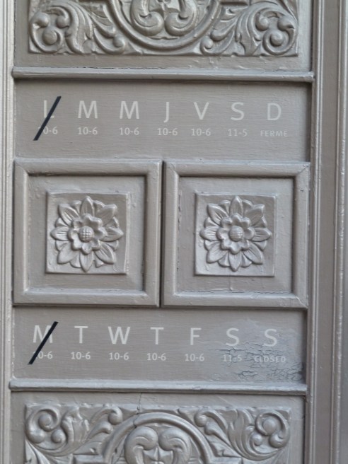 I’m driving back from Montreal as I write this.  Well technically I am NOT driving–my husband is.  This gives me a chance to share some eye candy from the trip, organized in these themes: