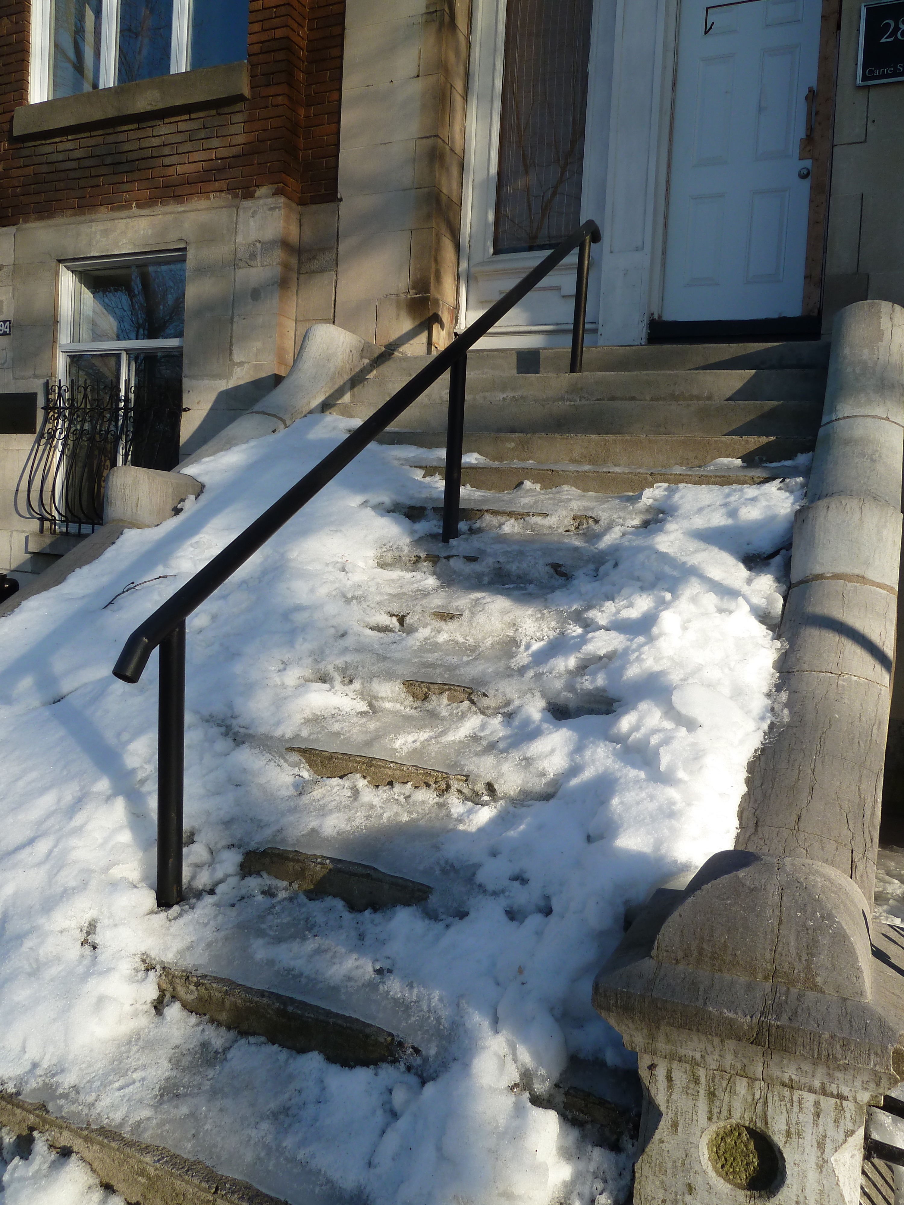 We assumed the house next to us was not occupied. Until we saw a guy routinely ski down these steps, basically right into the side of his car. It would have been so much easier to just shovel now and then.