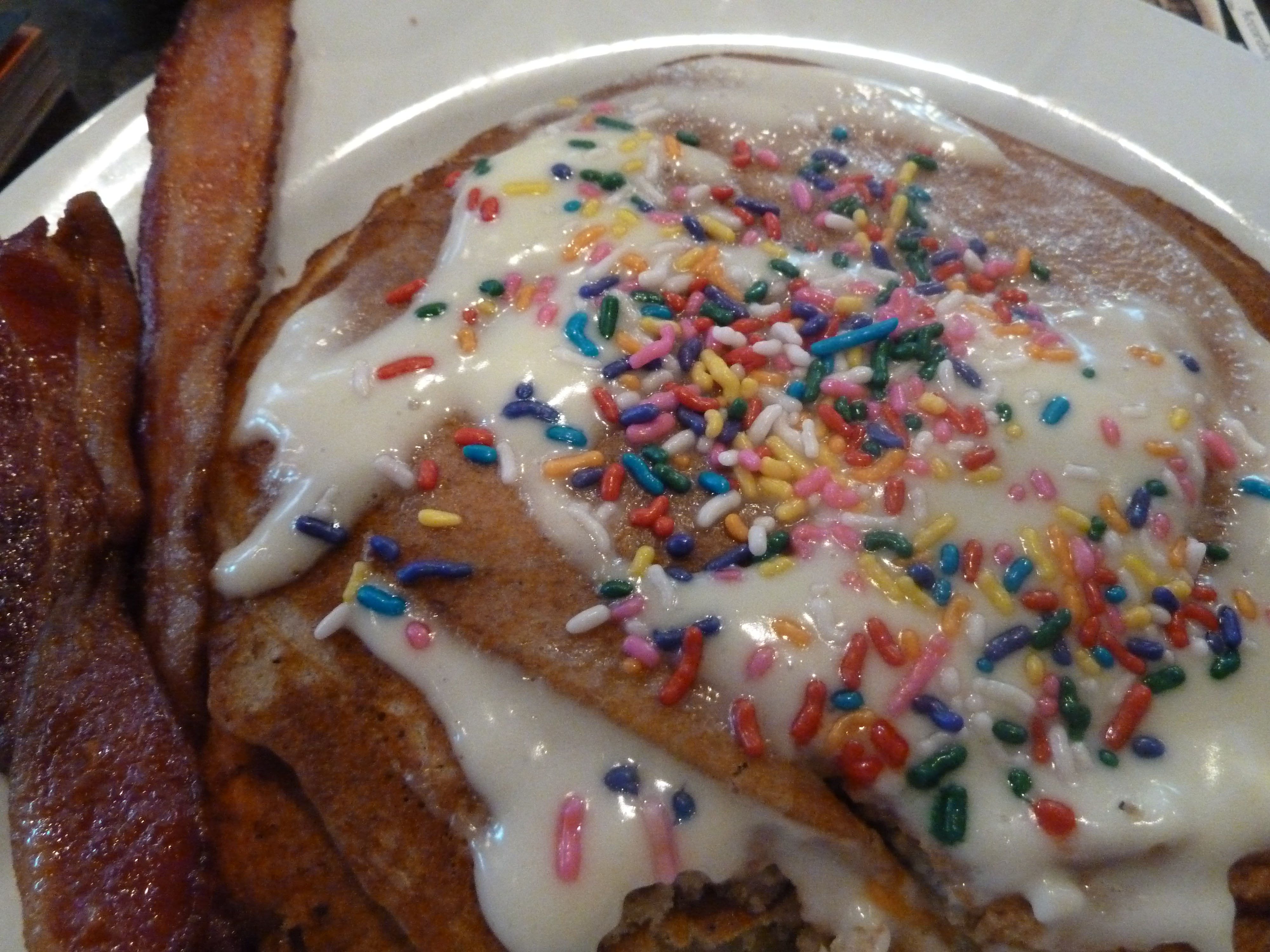 Back to the Wizard of Oz atmosphere, I myself said, “We’re not in Kansas anymore, Toto” when I ordered cinnamon pancakes at The Ruby Slipper and they arrived looking like a Dunkin’ Donuts Easter special. They actually tasted pretty good.