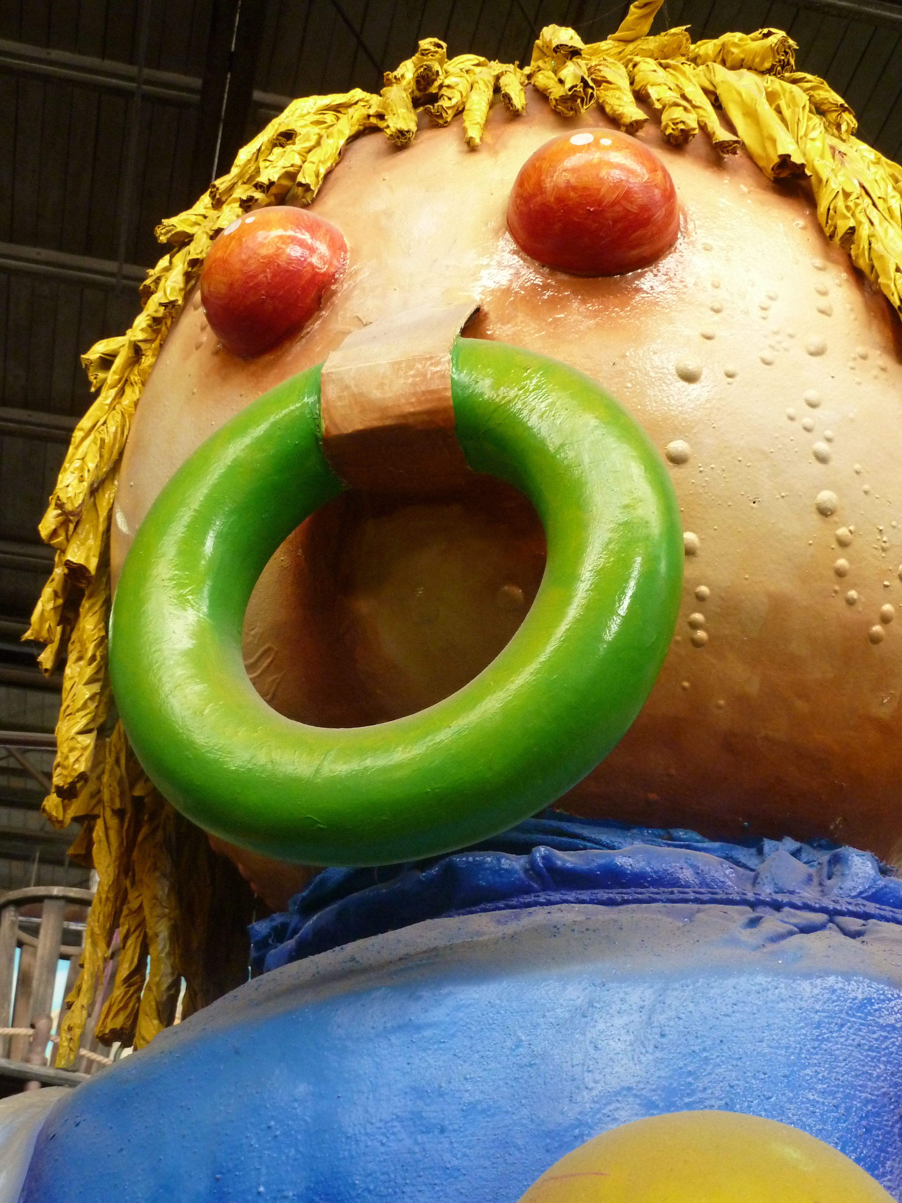 It’s a blast to tour the year-round backroom studios of the enormous Blaine Kern workshops, where they start building the next year’s floats the minute Mardi Gras ends. But this scary “doll” sporting a weird pacifier and acne could not be explained by our tour guide. It must have inspired many a nightmare as this giant water head lumbered slowly down the parade route.