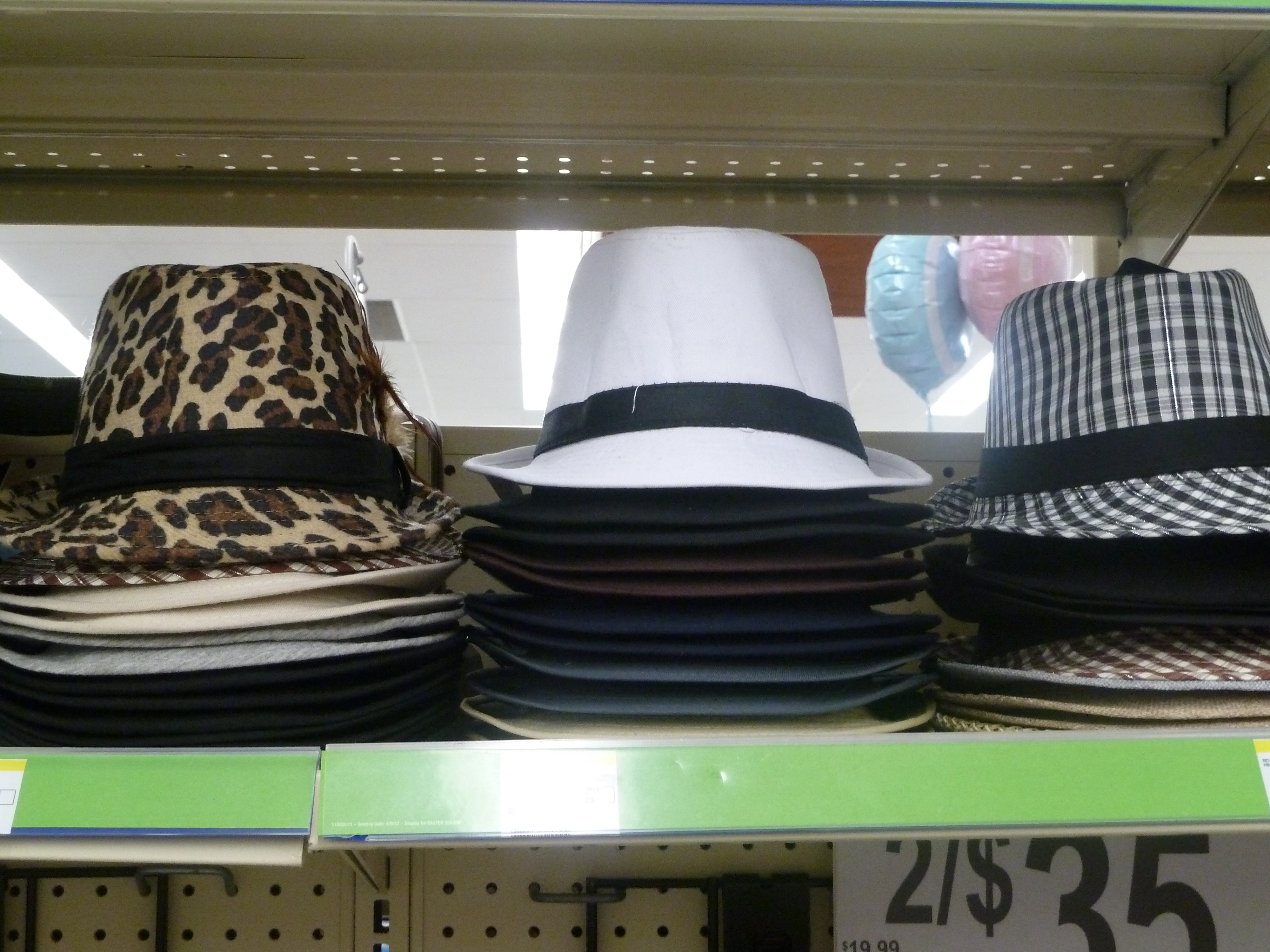 I come from a  hat-wearing city: Detroit. New Orleans had a number of booming hat shops. The most prominent “everyday” style on the streets was this one–for both men and women. They even had shelves full of them right here, in Walgreens.