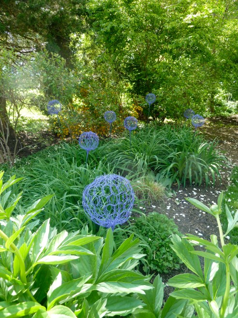 I was then off and running and made 11 purple globes to put in a rather dull spot of my garden.  I like their ethereal and “what the heck is that?” quality.  I am waiting for the suburban neighbor reaction to this new front yard installation.  Fun!  Thank you Pinterest.