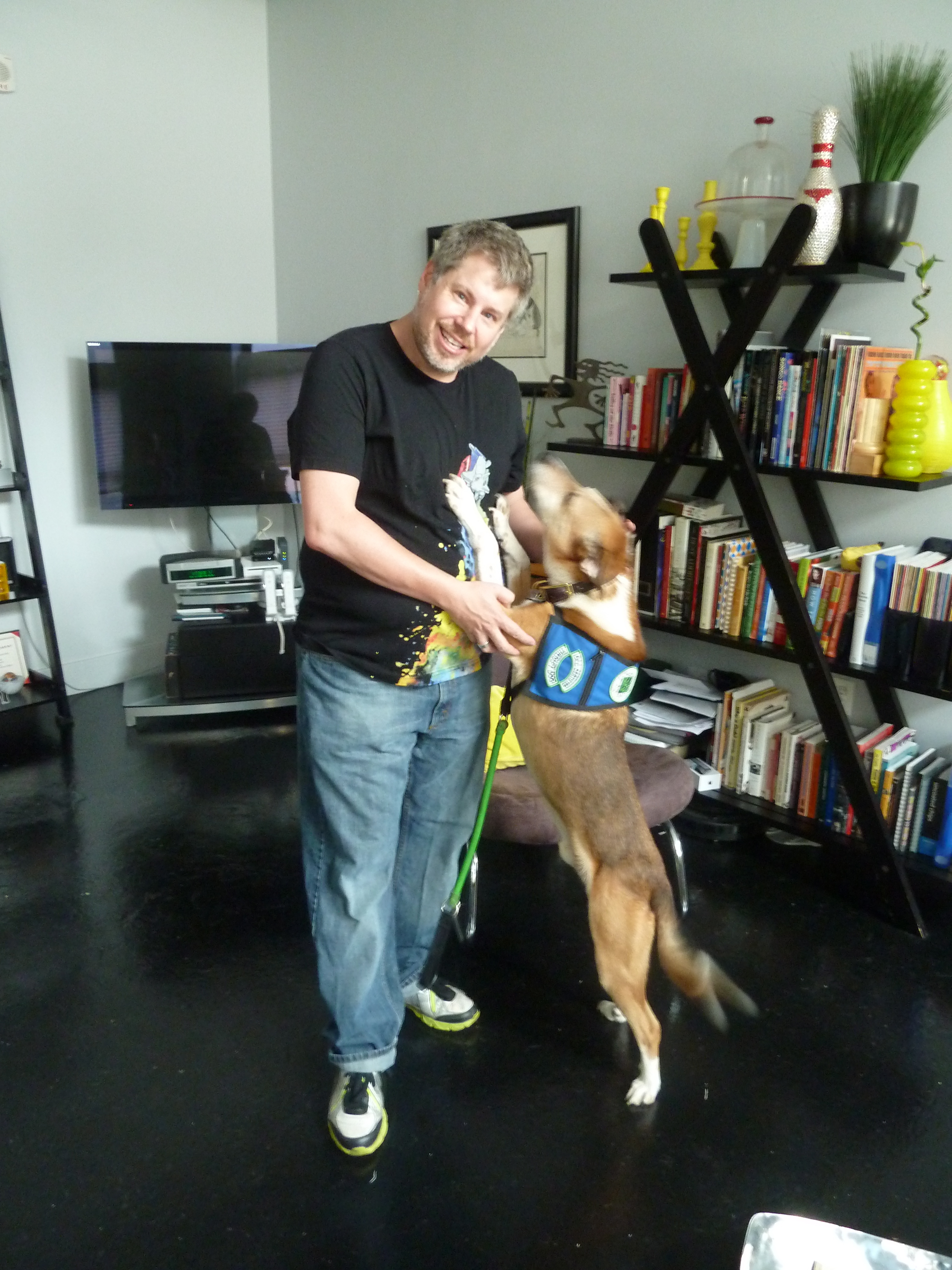 Pilot’s a therapy animal.  He never barks and he likes to be petted.