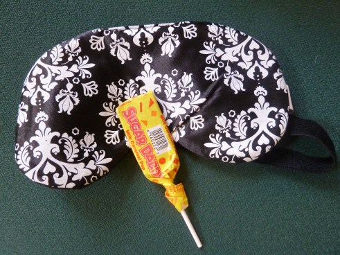 I slept just fine.  The eye mask from Jon helped.  It created a semblance of privacy even as he and Pilot slept mere steps away. And the Sugar Daddy made me laugh.