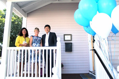 Joanne Domeniconi and me with Mickey Mikitani at the Grommet office last month