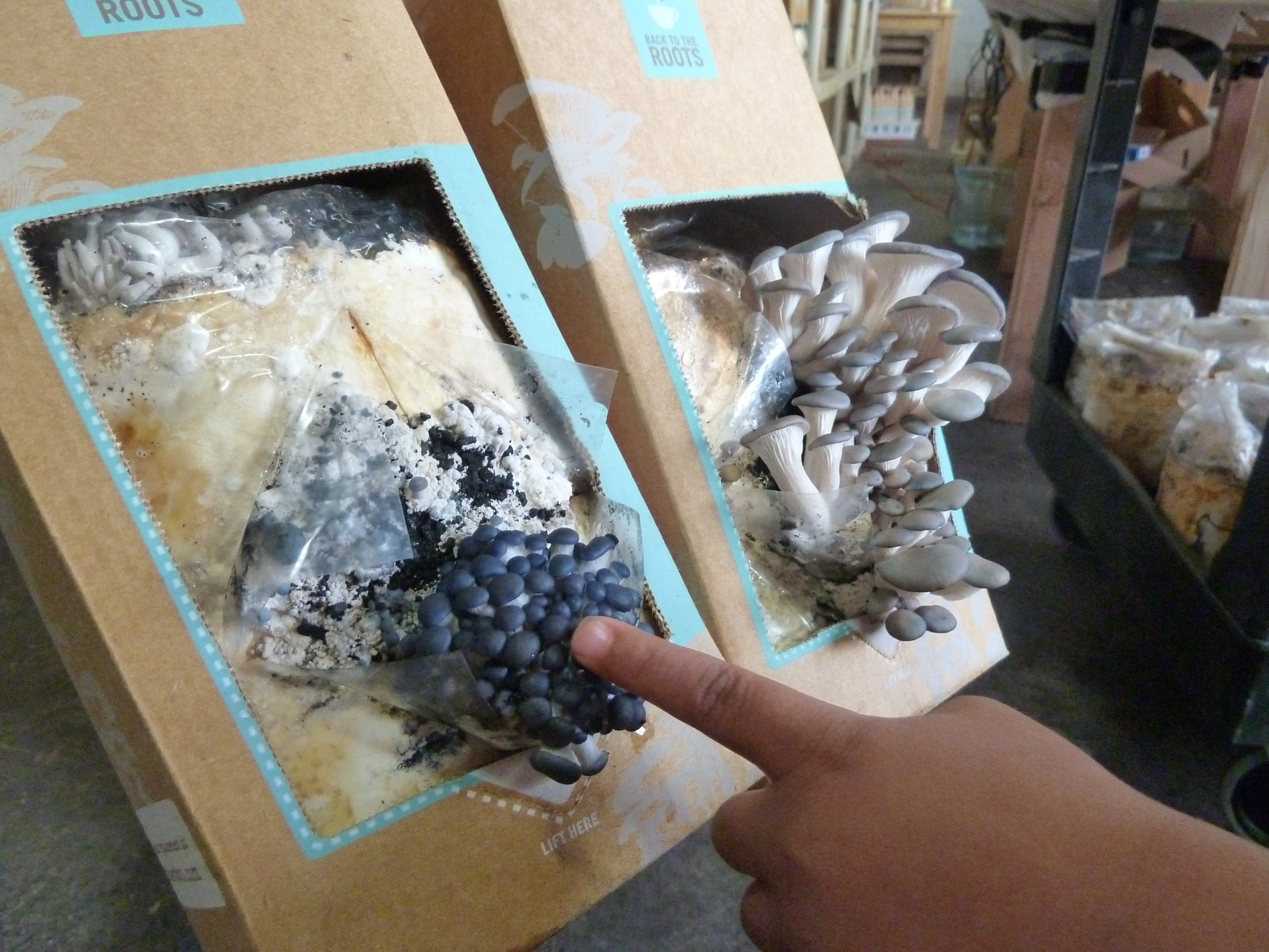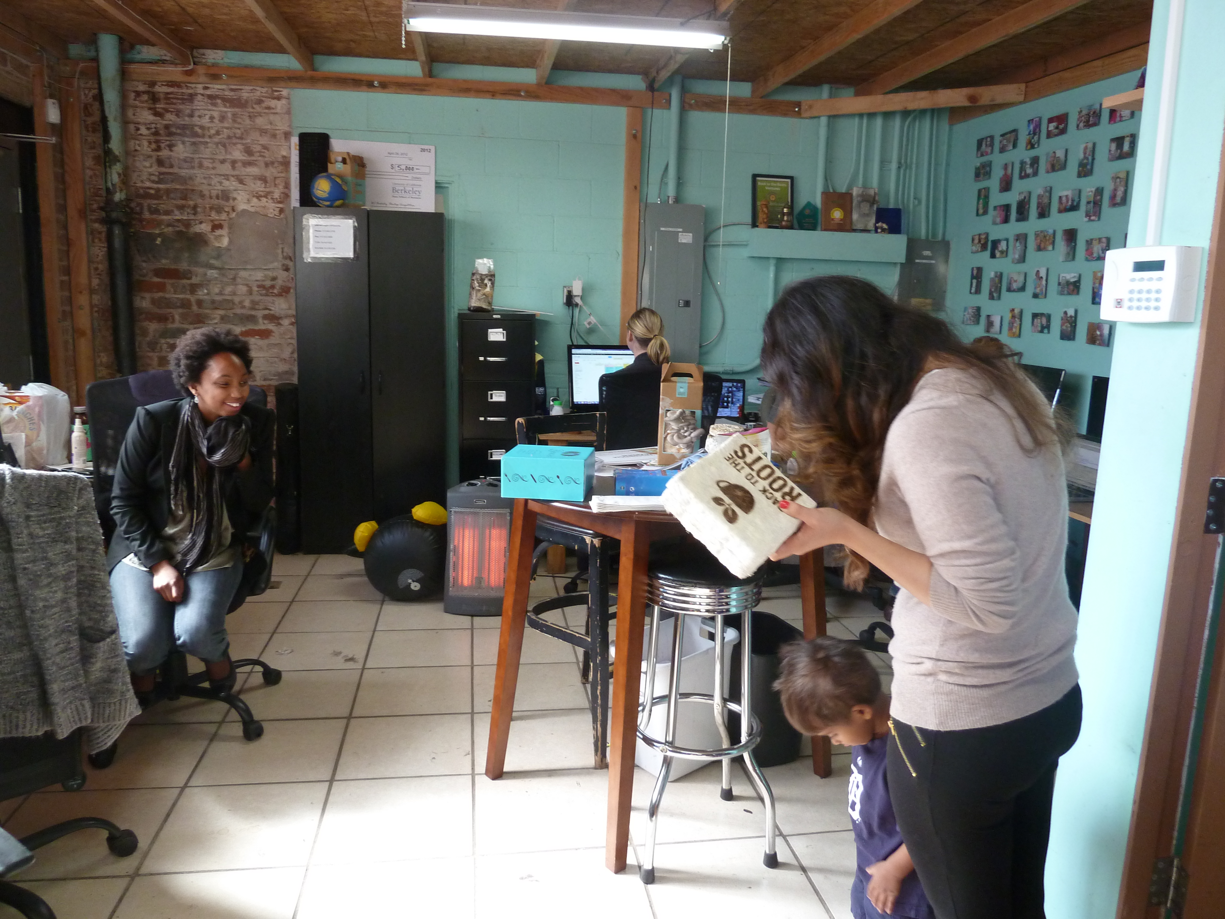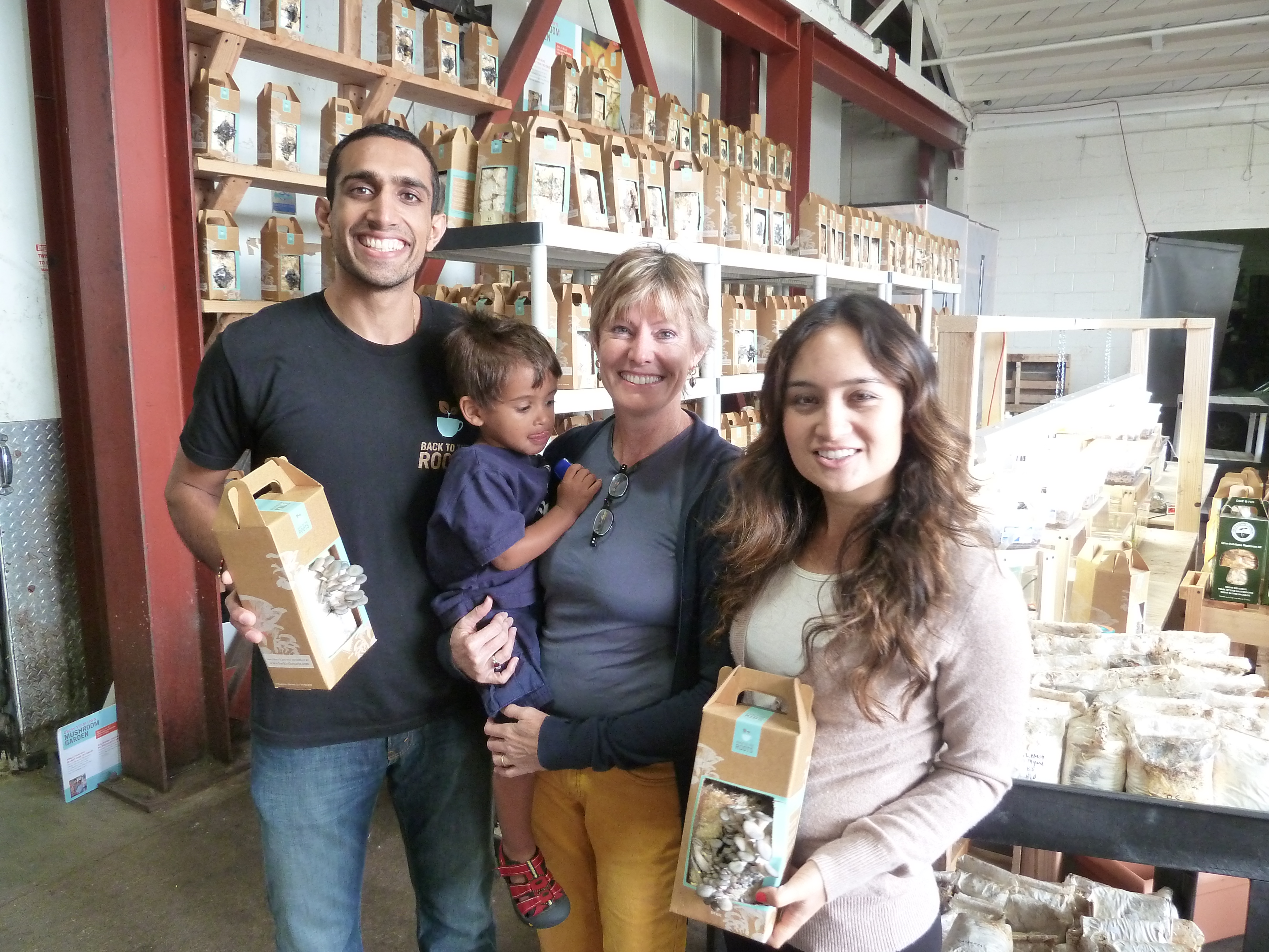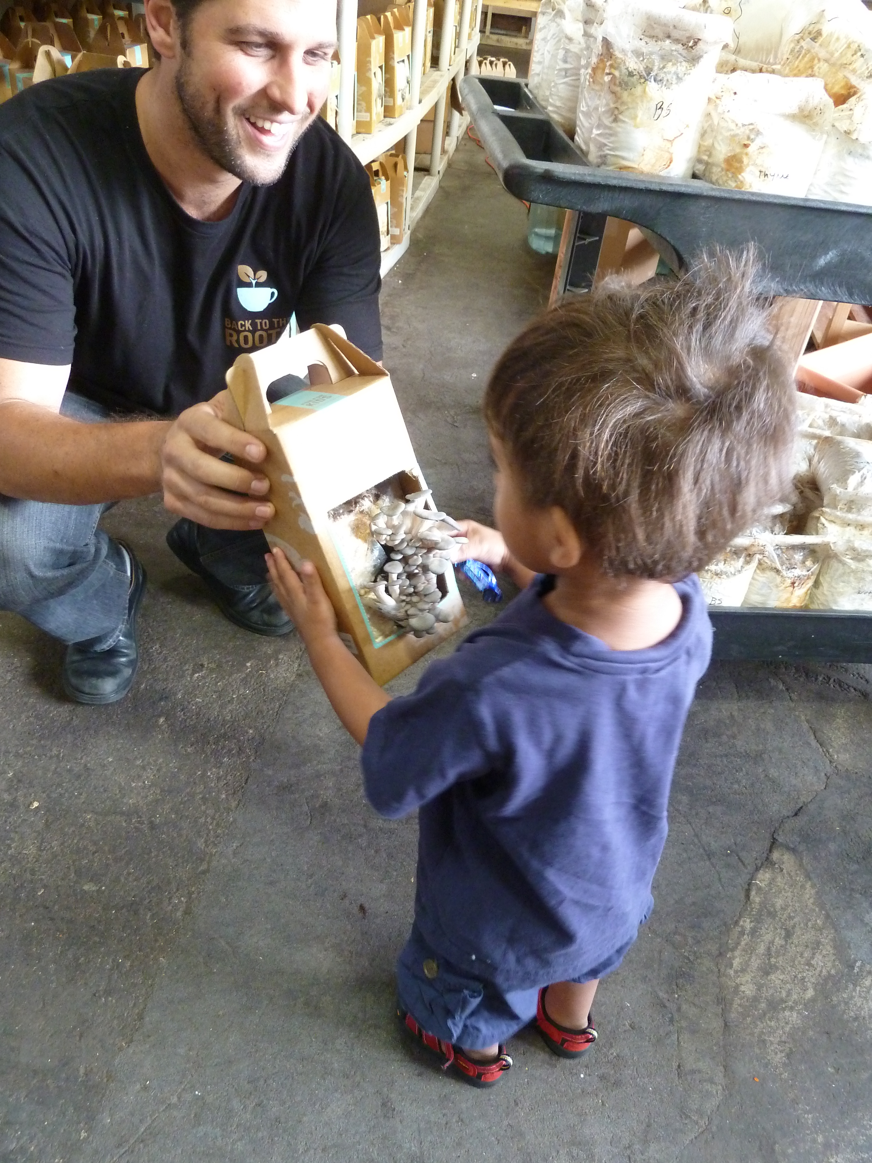 The single best thing about building Grommet has been watching the ongoing success of our Grommet partners, like Back to the Roots Ventures. The founders are two young guys who came up with the idea to recycle coffee grounds into mushroom growing kits. I took a road trip to visit them at their Oakland CA facility, with my two-year-old nephew Killian in tow. Community outreach is a big part of their ethos at BTTR, so the team was most welcoming to a little boy.