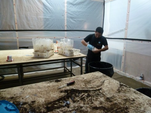 In this clean room is the man who expertly blends the mushroom spores, coffee grounds and growing medium to create each hand-packed kit.