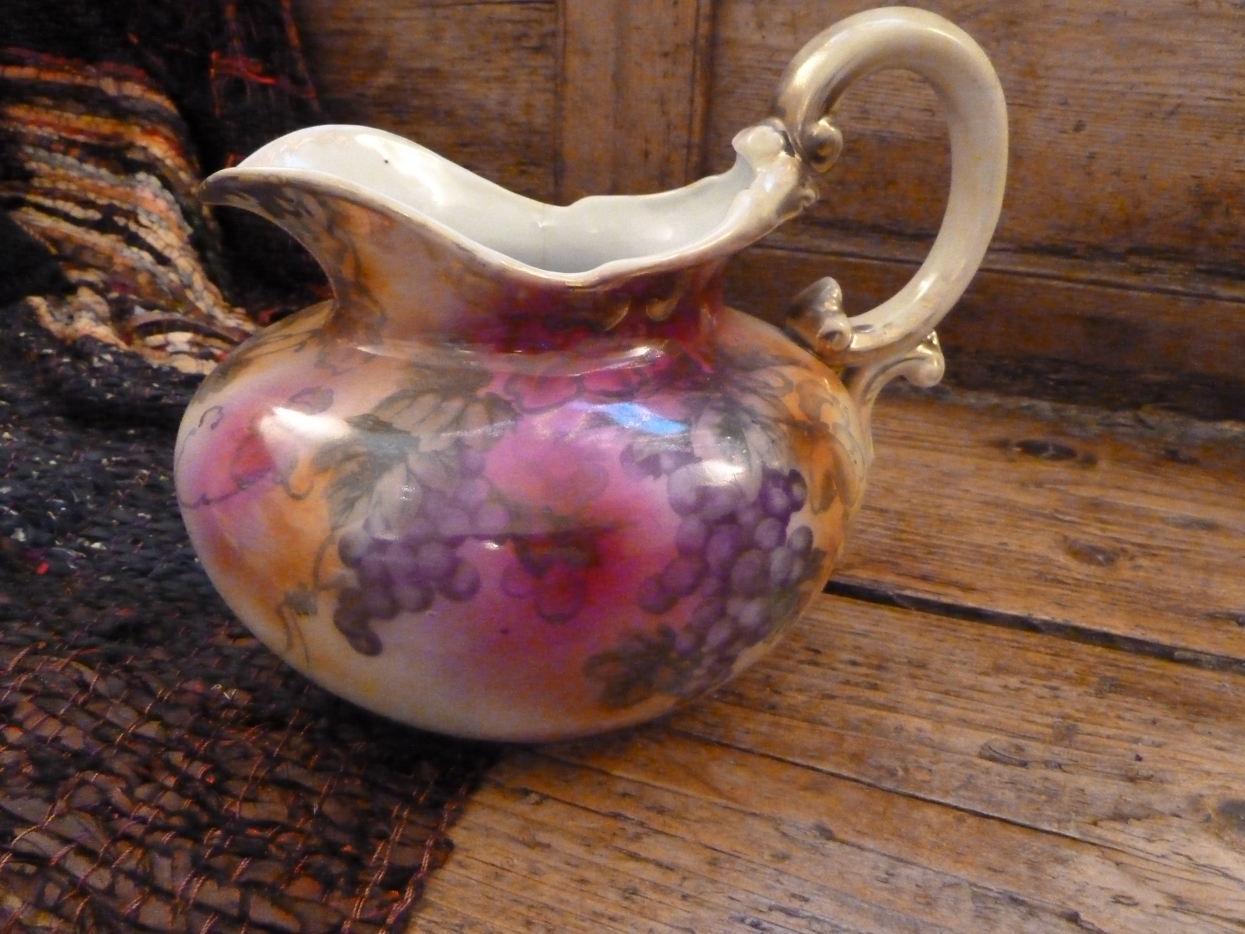 She shed most of her possessions when she was moving but somehow my husband claimed this gem for his inheritance.  Even Eileen says, “Why did you want that ugly pitcher that I got stuck with from my mother-in-law?”  (I had thought maybe it was once fashionable and I just didn’t have the eye to appreciate it.) When I visit Eileen she will sometimes press a piece of costume jewelry in my hand and say “Will you remember me when you wear this?”  It makes me a little sad, but I think a 95-year-old is just plain realistic, not morbid, when she says something like this.