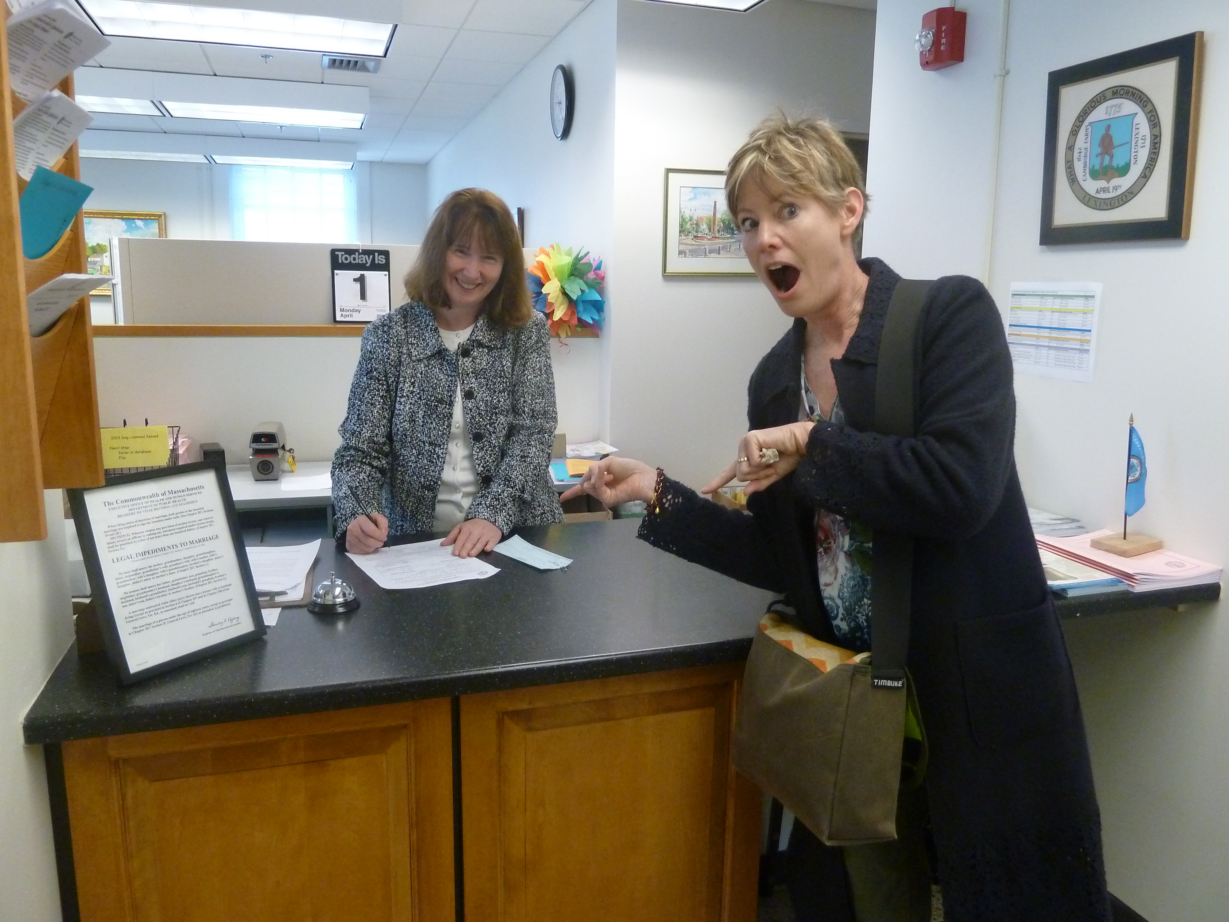 At the Lexington Town Clerk’s office, filing our D.B.A. certificate