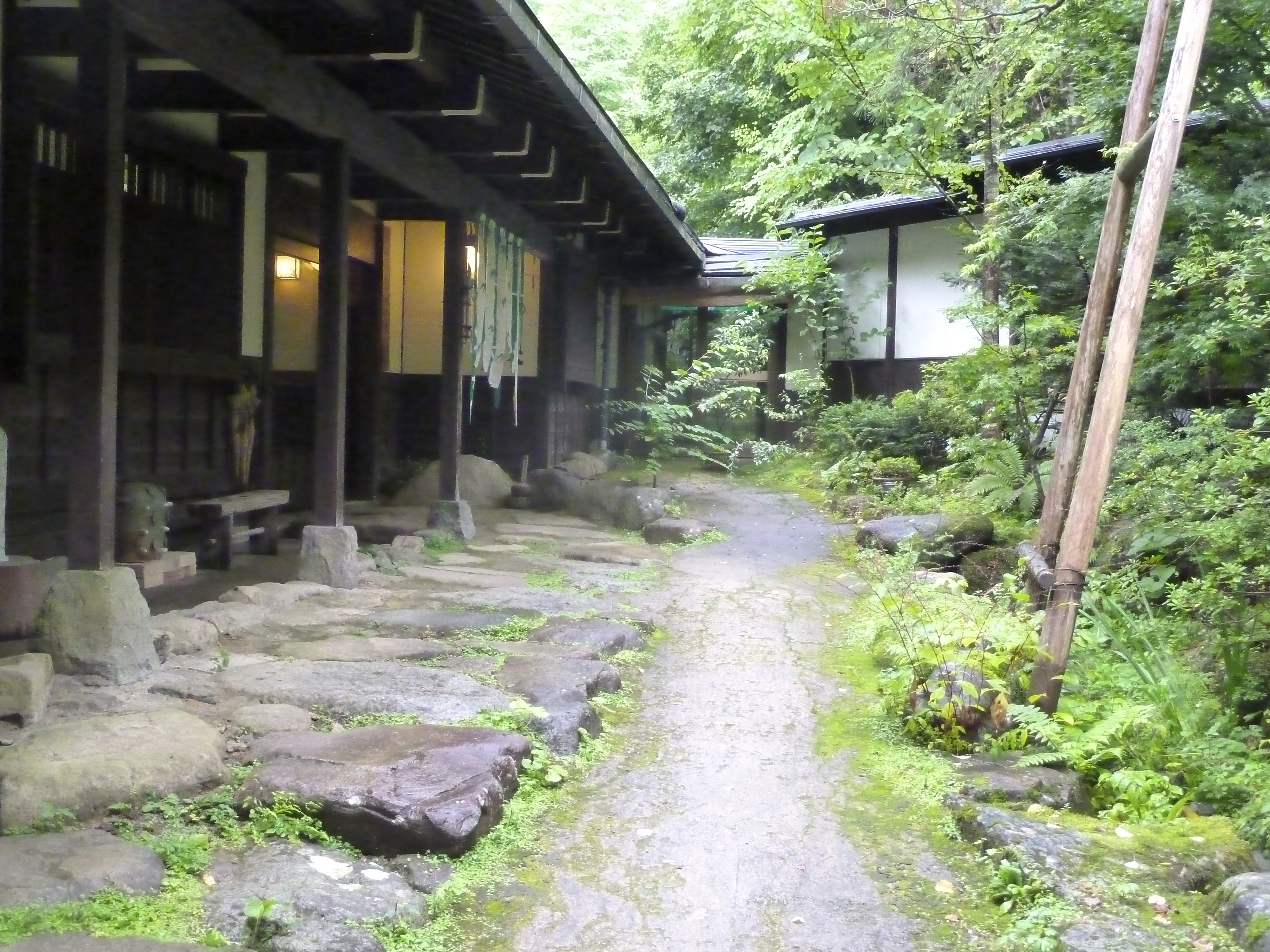 Above is how you first encounter the Japanese alps inn, off of a little dirt road on a tiny country lane. Ryokan often start as ordinary, albeit large, houses so they are not necessarily in commercially prominent positions.