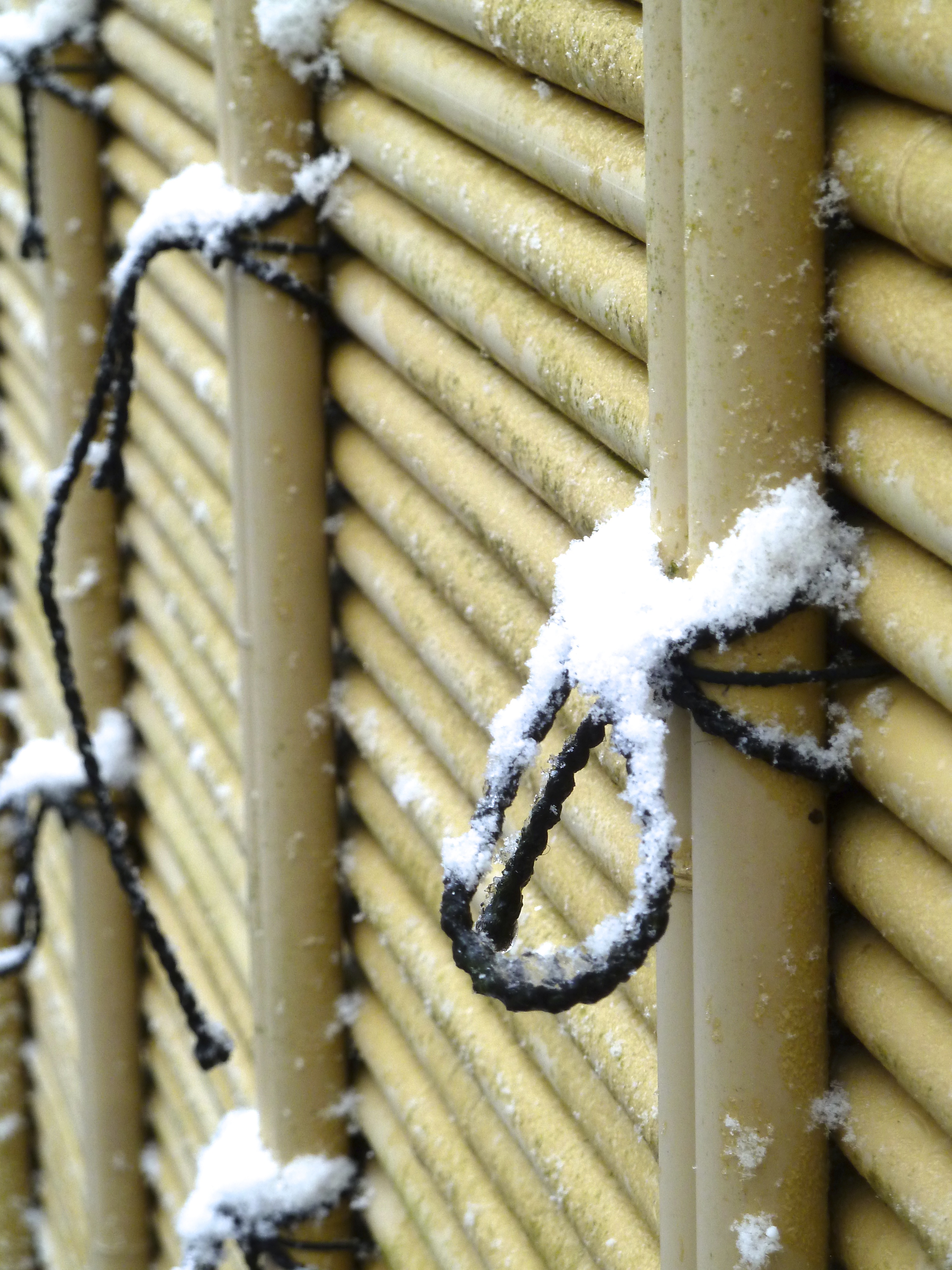 My favorite thing of all are the ordinary expressions of grace, like these casual ties on a bamboo privacy fence. They’re not plastic, industrial, or beefy. But they do the job beautifully.