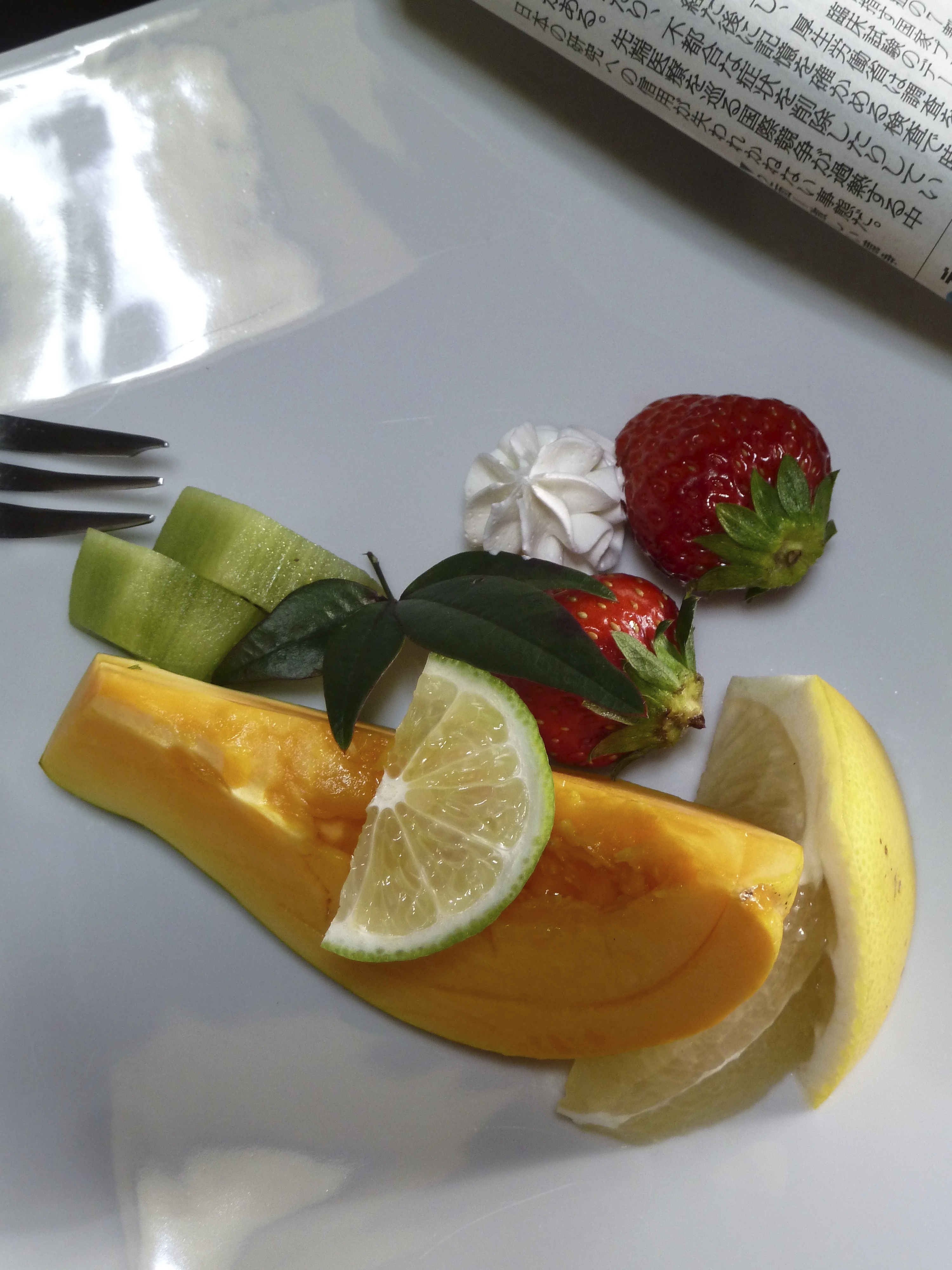 Here is Gray meeting dinner on the first of three nights. I knew at this moment that we were booked to stay for two nights too many, at least in his estimation. Over the next day he started periodically measuring his wrist circumference as a proxy for his starvation level. It’s not that there wasn’t massive quantities of food. He just could not get his bearings with virtually everything but rice being unfamiliar, small, often cold, often pickled or raw. Or in this case, extremely artfully displayed to look like it was just minutes away from its natural habitat
