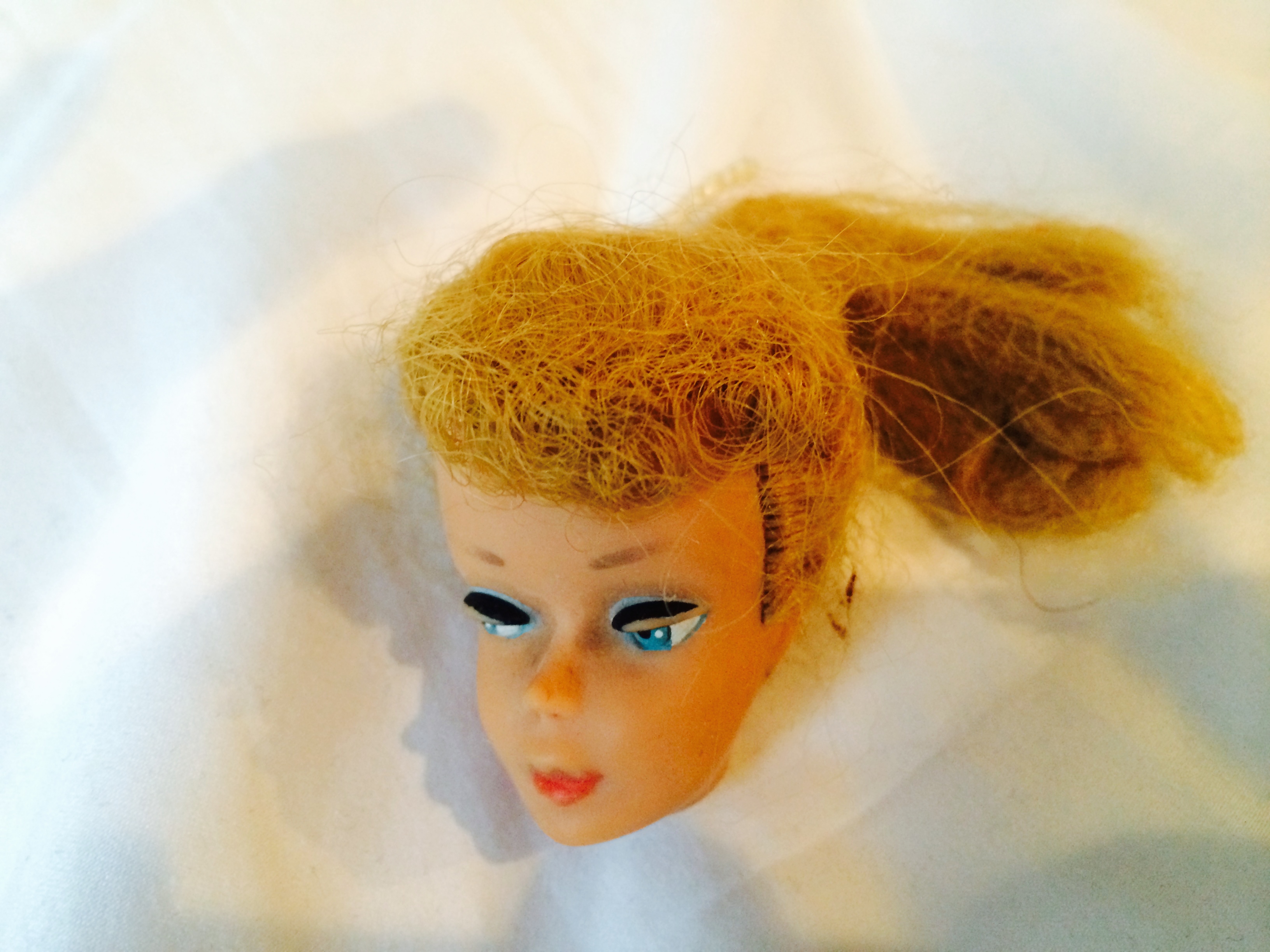 I found this, my favorite Barbie, body-less, with her hair all matted up.