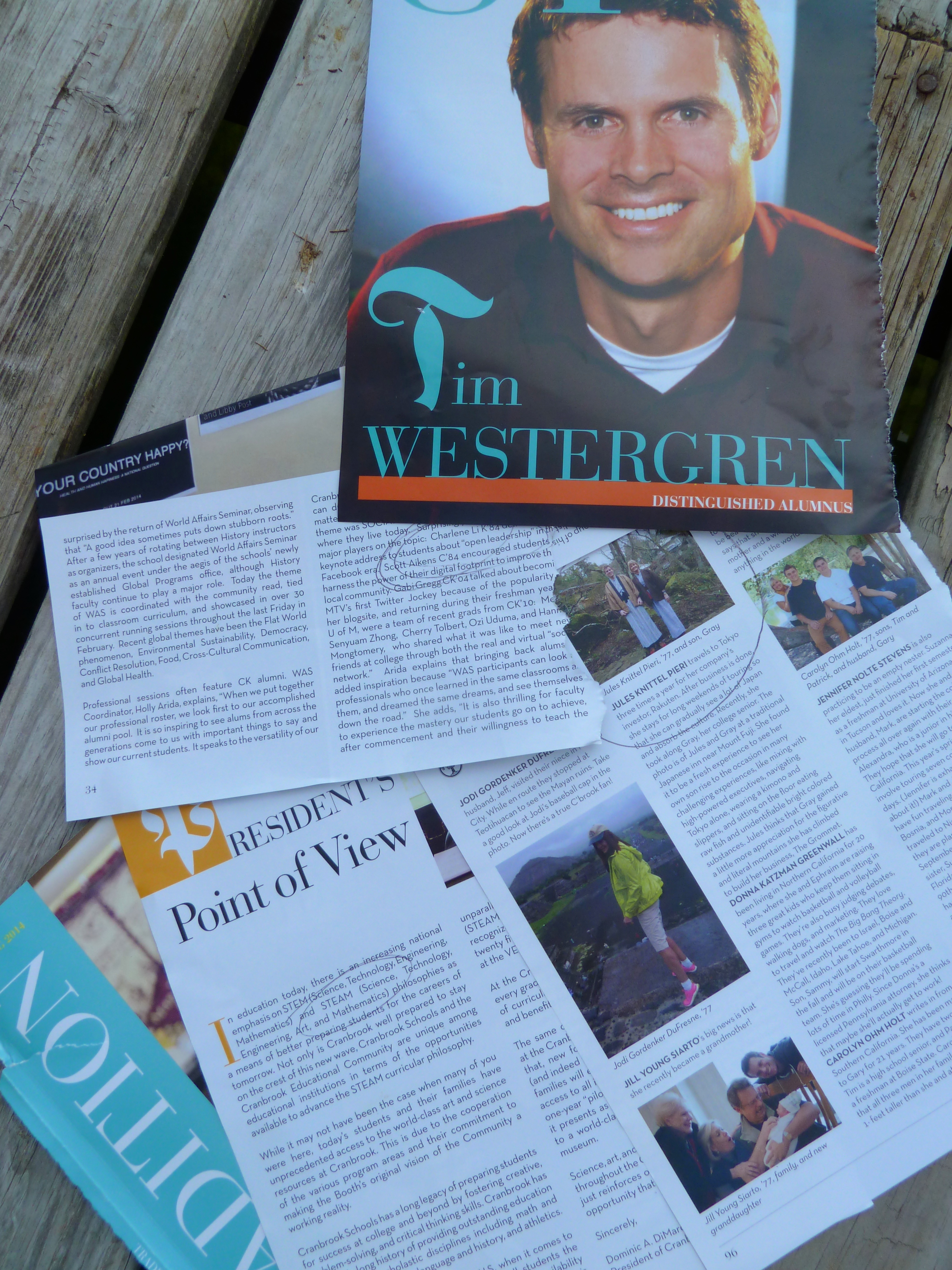 This pile below is a mishmash. In reading my high school alumni magazine I caught a new term articulated by the Cranbrook Schools President: STEAM learning. Ie. Science, Technology, Engineering, Arts, and Mathematics. I had never heard the “A” inserted. I will start to use it. There’s a little blurb about me and my son with a photo of us in Japan, but more importantly I learned that my own entrepreneurial role model went to the same high school. I will use this nugget to reconnect with Tim Westergren, the founder of Pandora. (We interacted when Grommet launched Pandora Mobile a long time ago–he made a great video for us.)