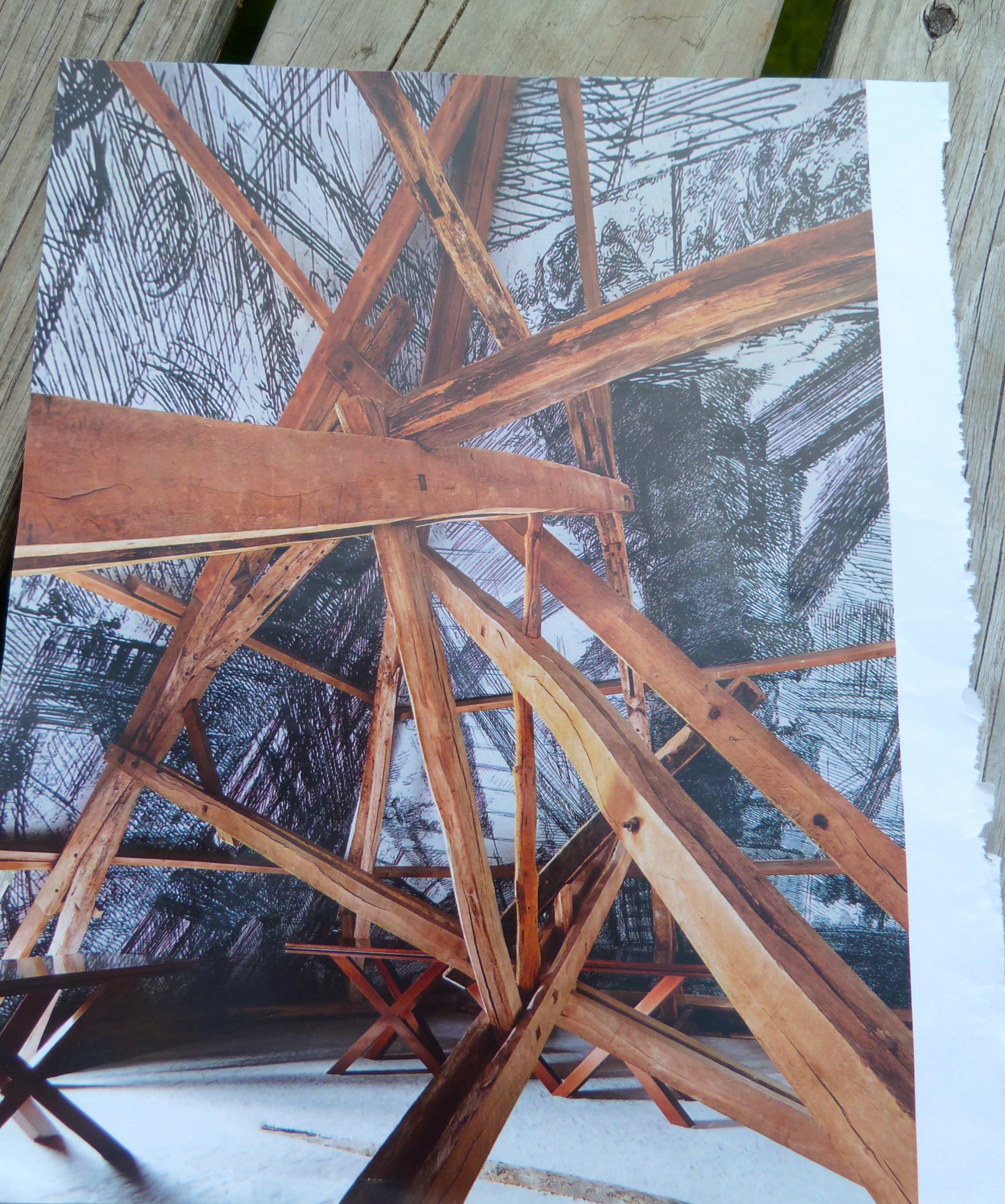 From the same magazine I was also really taken by this attic in a renovated French chateau. I loved how the “maximalist” designer Juan Pablo Molyneux enhanced the crazy but functional beam structure by by covering the walls with 25X enlarged Piranesi engravings dating from 1750.