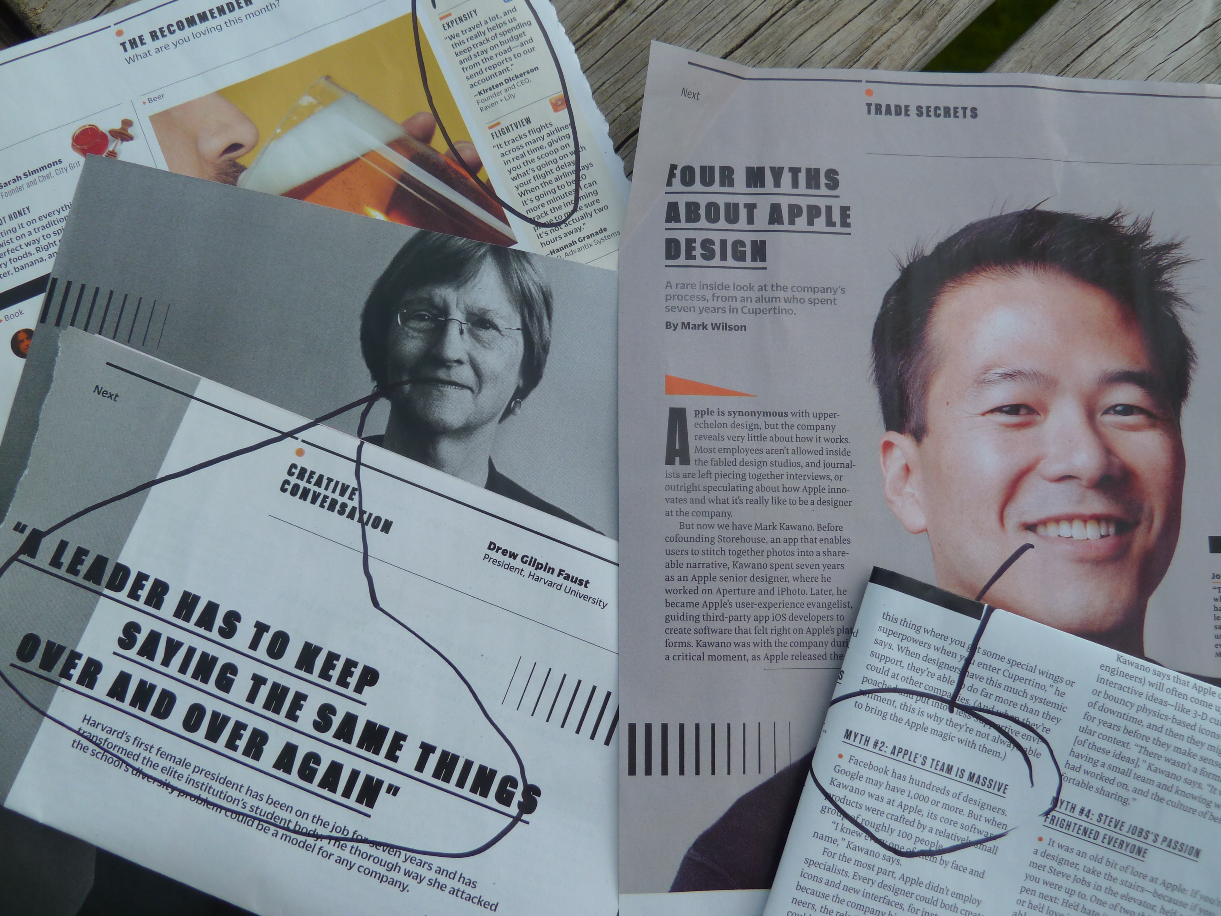 I also read to find reinforcement for my leadership practice, and to get better. This quote below from the President of Harvard reminds me to do something I find particularly hard, and the second interview with a former Apple designer reinforces some suspicions I had about how design really “worked” under Steve Jobs at Apple.