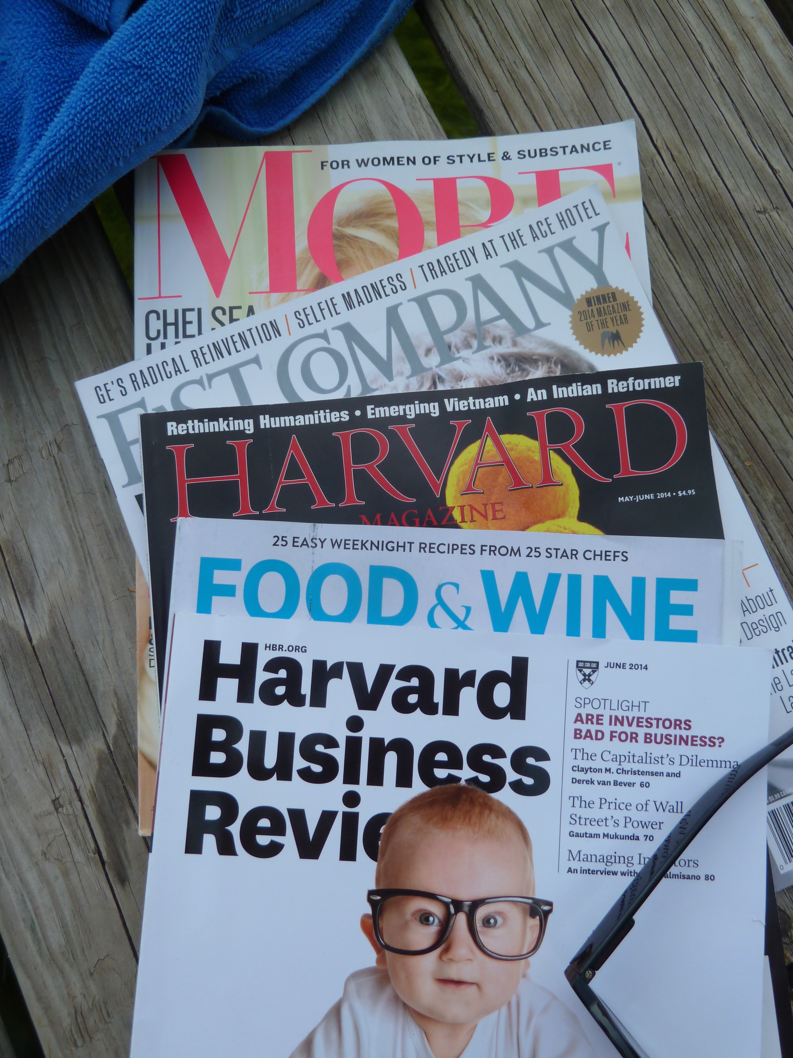 So to wrap this all up and make some of this more tangible (well, at least the reading part), I took pictures of what I was consuming for the last few days of this vacation. Here is a sampling of the 10 or so magazines I read so far. I put Harvard Business Review on top to look smart. I don’t always read it, even though I write for it.