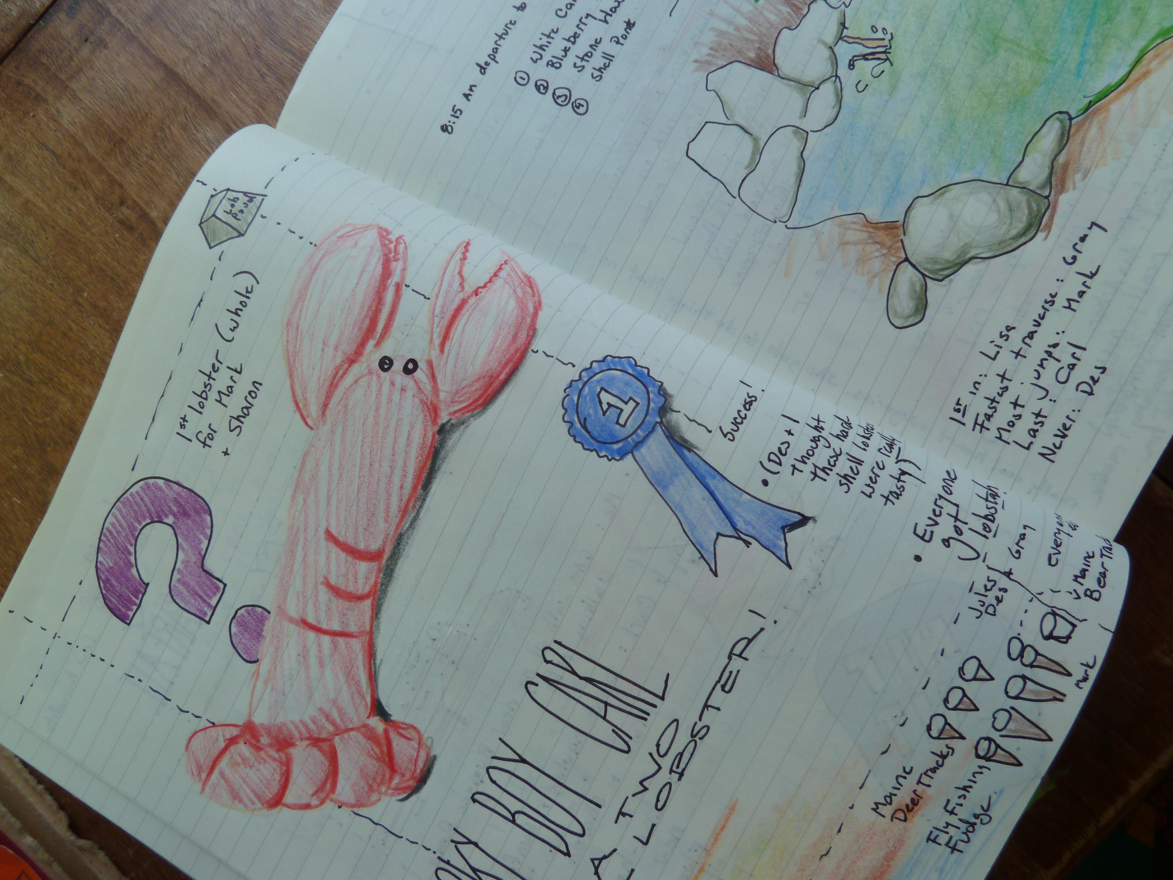On the personal side, I create visual journals of my travels. In fact, I am writing this post while on a family vacation in Maine. Here is photo of a spread from this week’s journal. It’s not at all professional, but I am recording the “trends” and history of my family. I know there are more contemporary ways to do this (using Instagram or Pinterest or a travel app) but I love to sit and draw or cut and paste when we are all together.