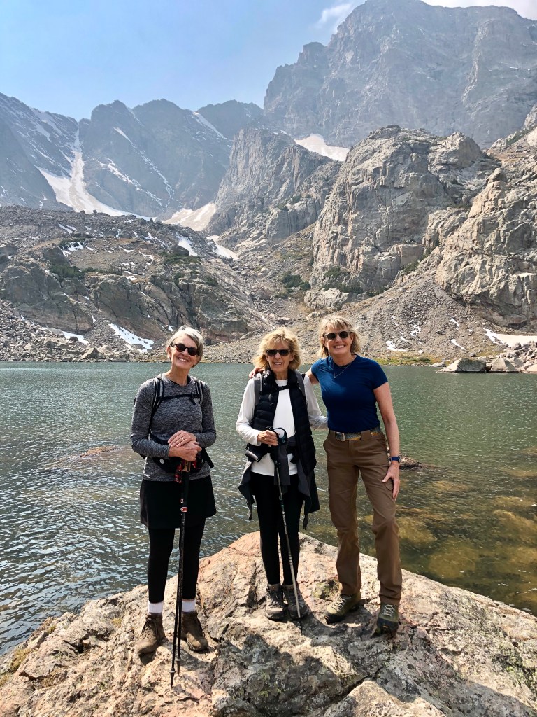 Anne, Jill and I at Fern Lake, at Rocky Mountain National Park. A nice visitor from Florida unfortunately discovered it is a haven for leeches.