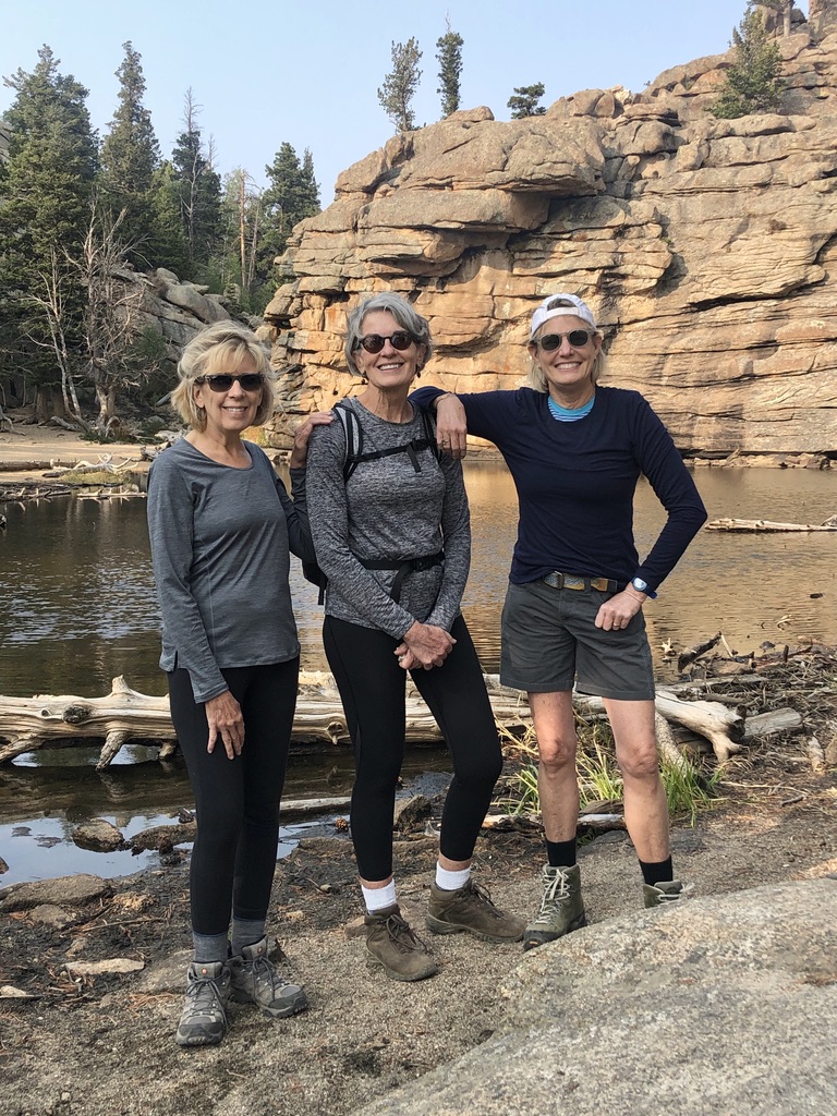Anne, Jill and I at Fern Lake, at Rocky Mountain National Park. A nice visitor from Florida unfortunately discovered it is a haven for leeches.