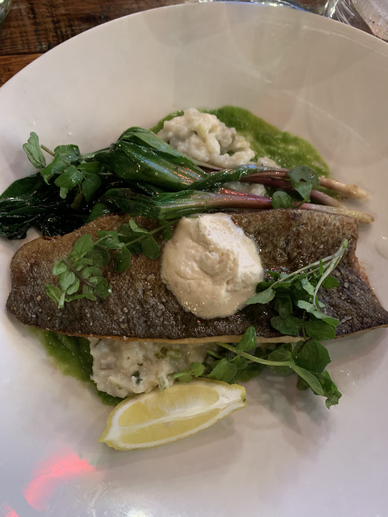 The first of many happy trout dishes. This one, at Rhubarb, was one of the best: served on grits with wild ramps.