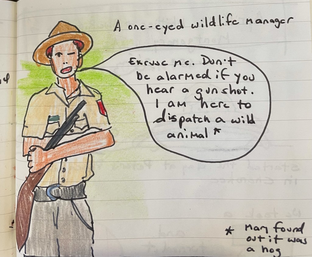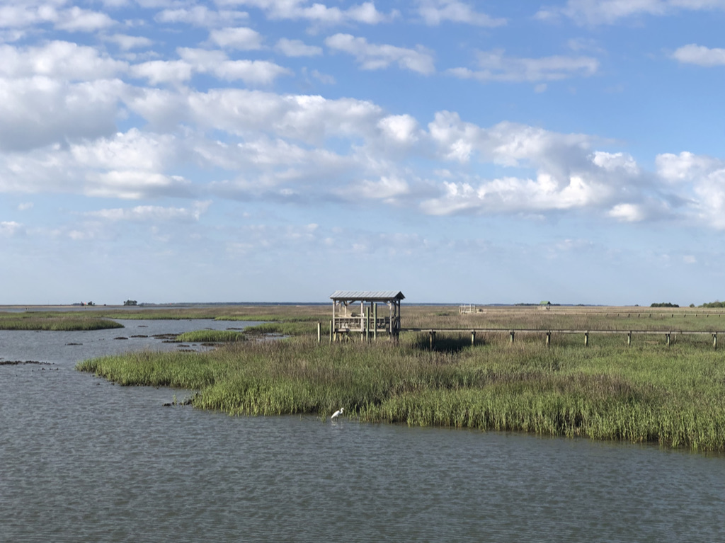 • Bulls Island in Cape Romain National Wildlife Refuge by ferry from Awendaw (alligators, birds, boneyard of landlocked dead trees, pristine beach.) This outing was one of my favorite events of the trip–for the landscape and the wildlife and getting a tiny sense of what it is like to live near the water in Low Country. After: a quick stop at Sewee Outpost